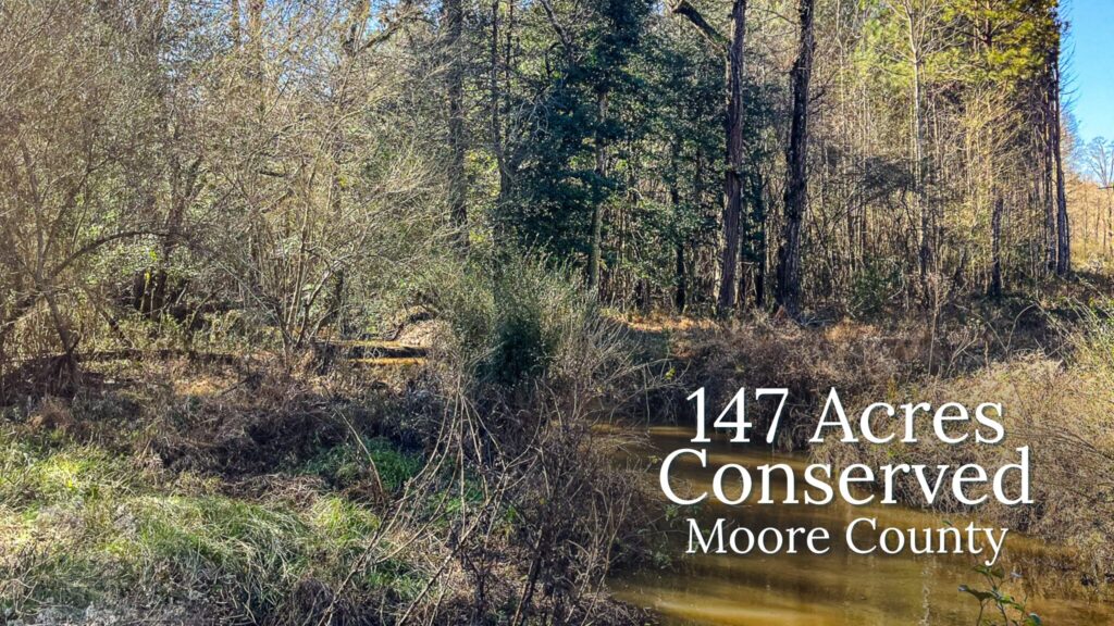 One Moore County family has partnered with Three Rivers Land Trust to ensure the permanent conservation of their land near Carthage. Now, over 147 acres of forestland will never be paved over or subdivided. Furthermore, this tract of land adjoins over 1,700 acres of previously conserved land, creating almost 2,000 acres of contiguous protected land